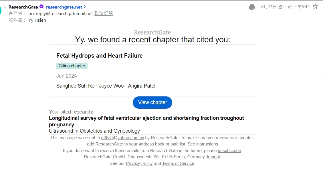 致謝涵: 本人論文被國際期刊引用/台中婦產科推薦/南區婦產科推薦
